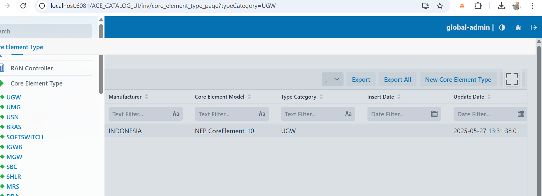 | Summary | Costomizable Configuration - UGW Core Element categorie | Costomizable Configuration - UGW Under Core Element categorie |