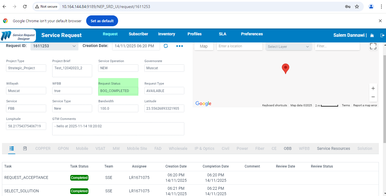 the request status will go directly to BOQ_COMPLETED, while the OBB milestone is activated as shown in snapshot attached but the request is not updated OBB task, it has gone to GTM directly.