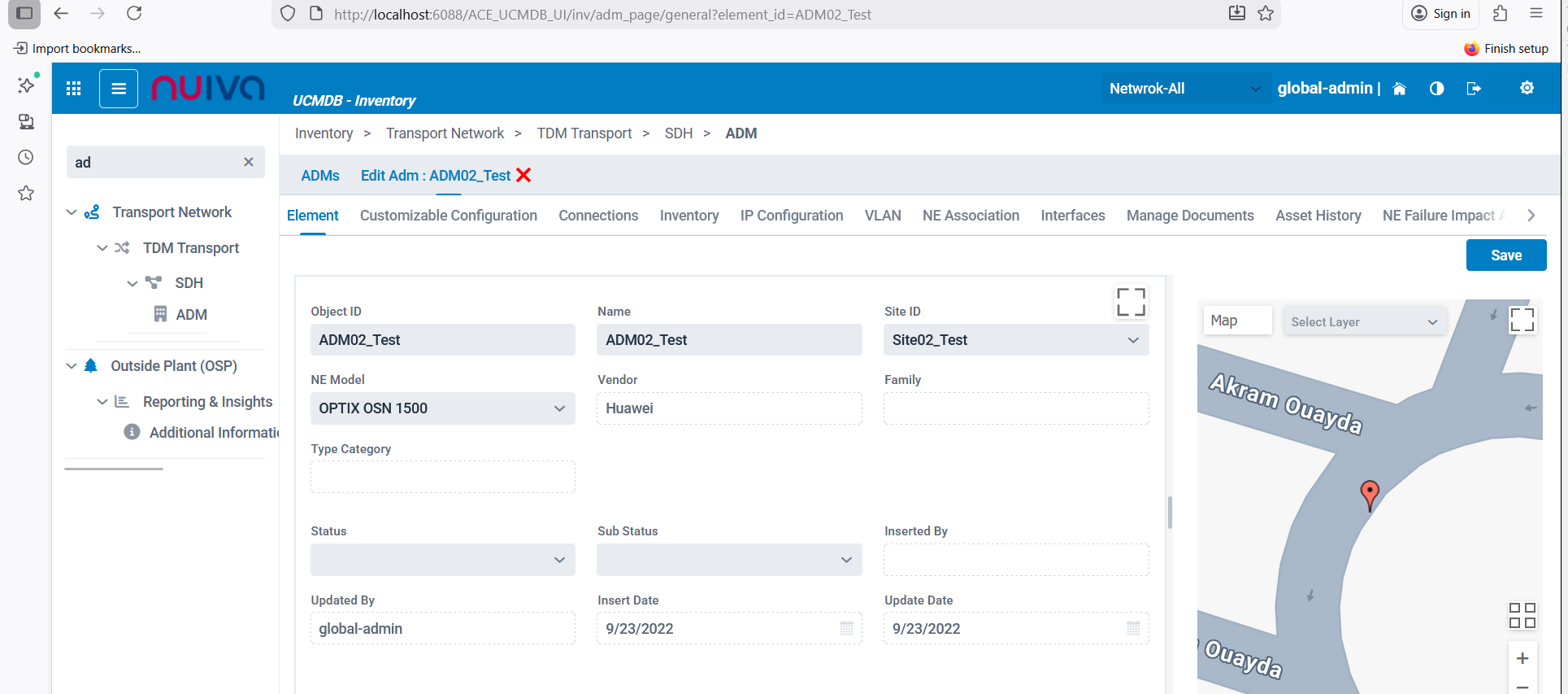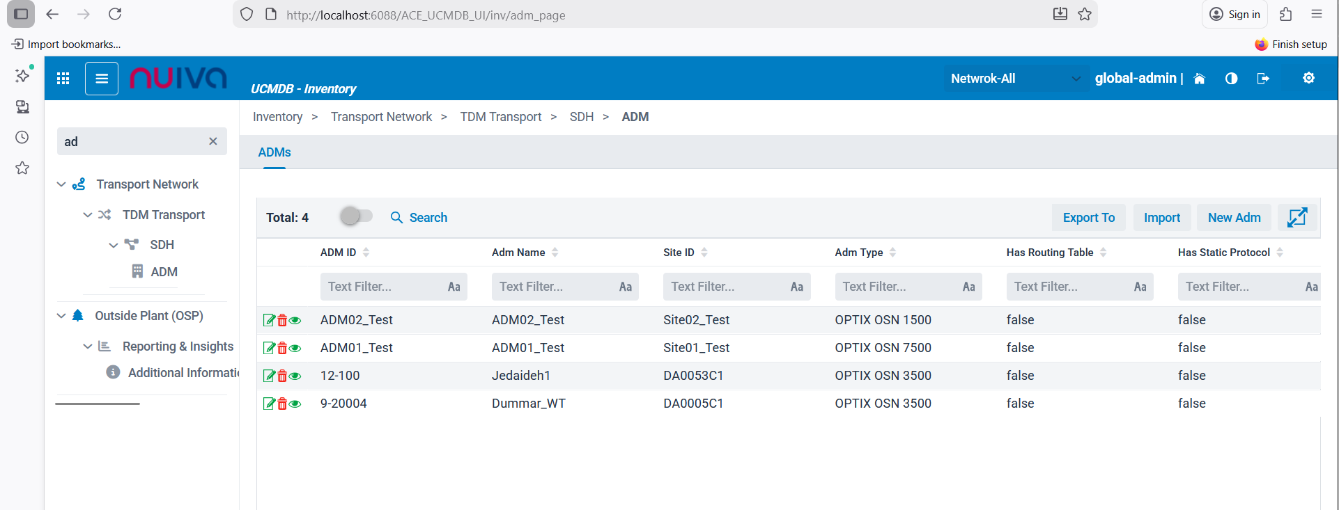 Tried to open the ADM sub section but there is an error Platform http://10.172.20.88:6016/ACE_UCMDB_UI/ |