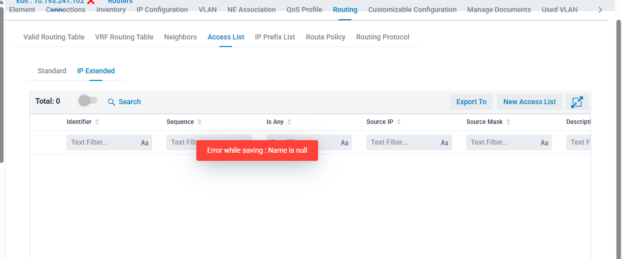 ACE, Unable to add extended access list ; save button has no response.