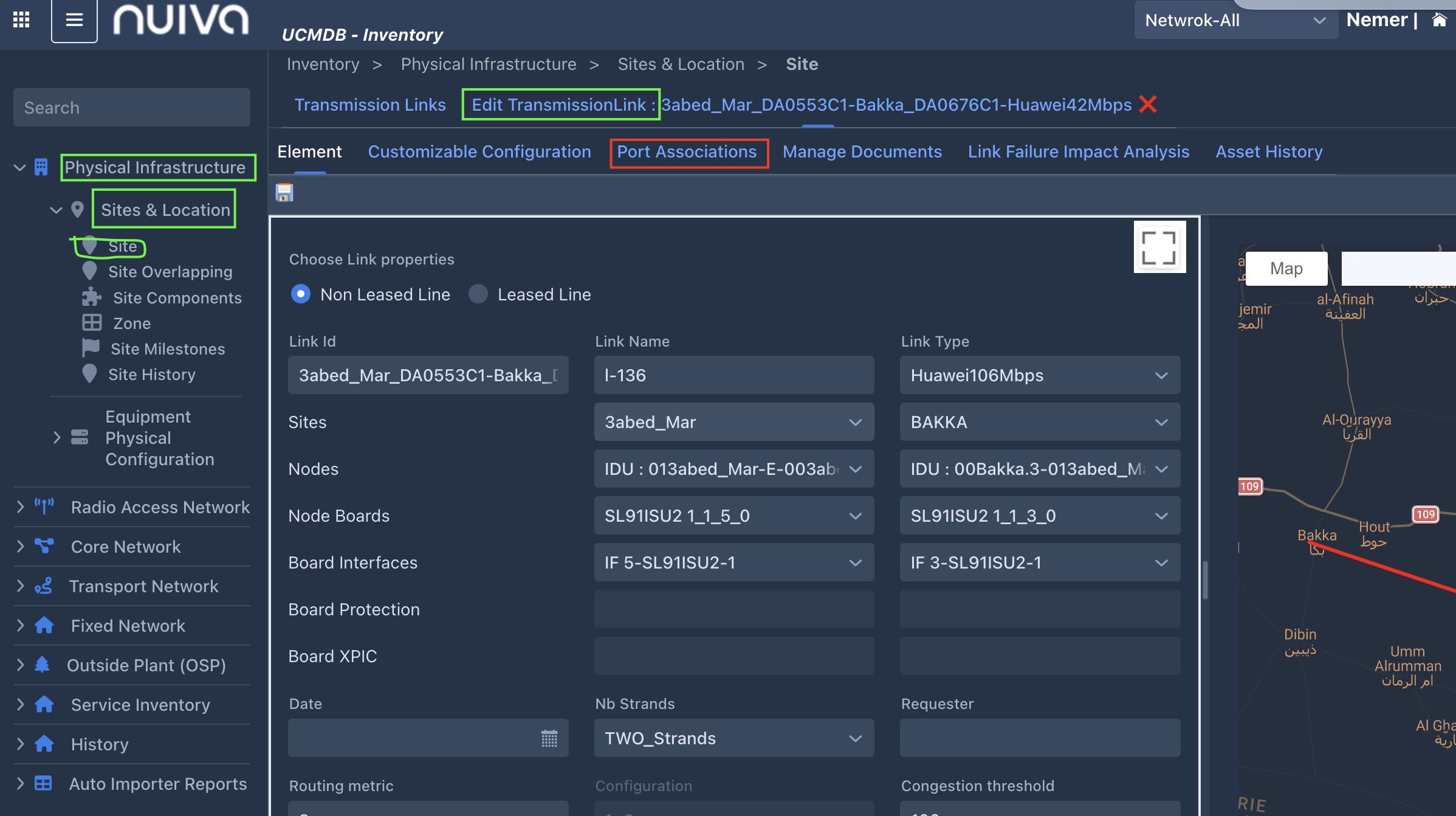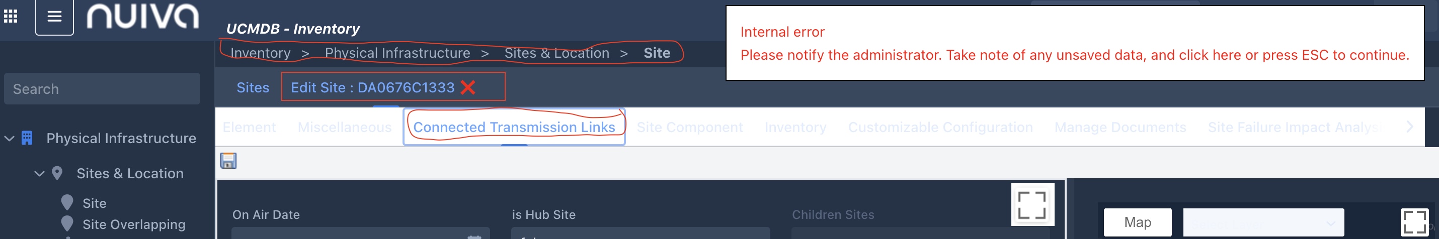Bug description: When we click on the following path: Inventory/Physical Infrastructure/Site&Location/Site/Edit Site/Connected Transmission Links