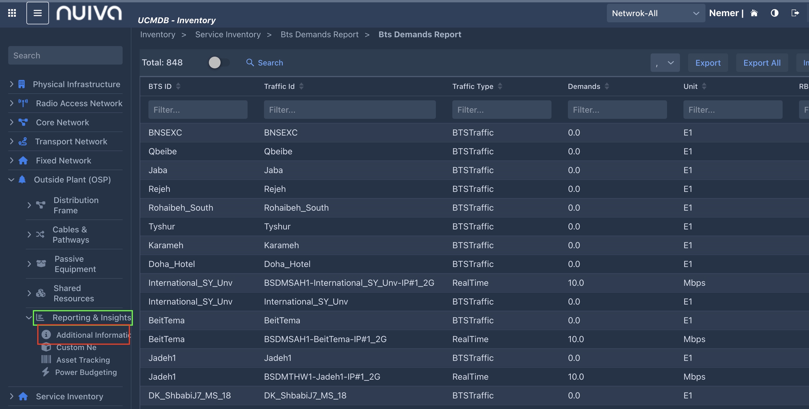 Bug description: When we click on the following path: Inventory/Outside Plant OSP/Reporting & Insights/Additional Information and Edit Element