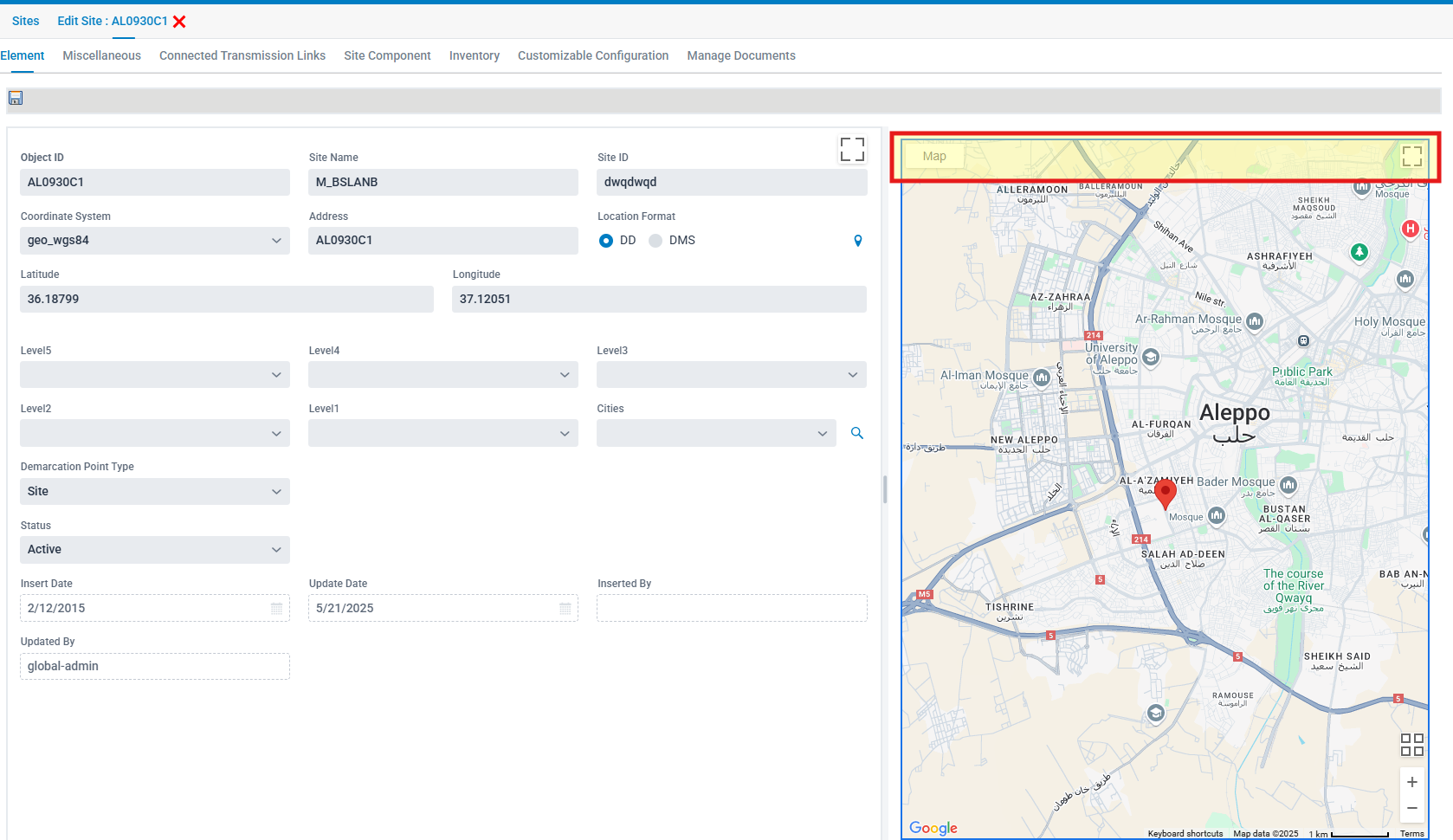 | Description | with add/edit mode of site or any other element, the element is displayed alone in the map. need to provide the ability to the user to select from the layers to see /identify the nearby sites/elements |