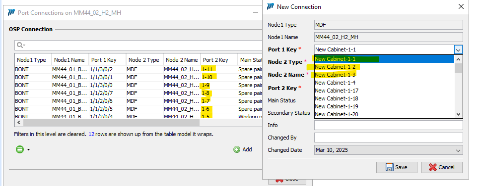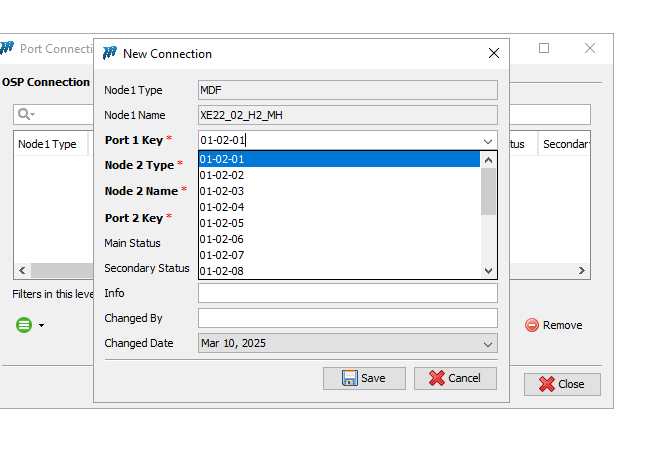 Diana Hamdouche added a comment - Please find the details below regarding the MDF configuration: MDF "XE22_02_H2_MH" was initially created on 13-DEC-22 with a specific configuration (Cabinet, Magazine). The same node was later updated on 11-MAR-25, reflecting a new configuration. Ports with an incorrect format (count: 16) were created on 11-MAR-25. MDF "MM44_02_H2_MH" was created on 07-JAN-25 with its specific configuration (Cabinet, Magazine, Ports). This confirms that the MDF Model "MDFH_Huawei_2" is not the cause of this discrepancy. The main reason is that MDF "XE22_02_H2_MH" was originally created with an outdated configuration in 2022 and later updated in 2025.