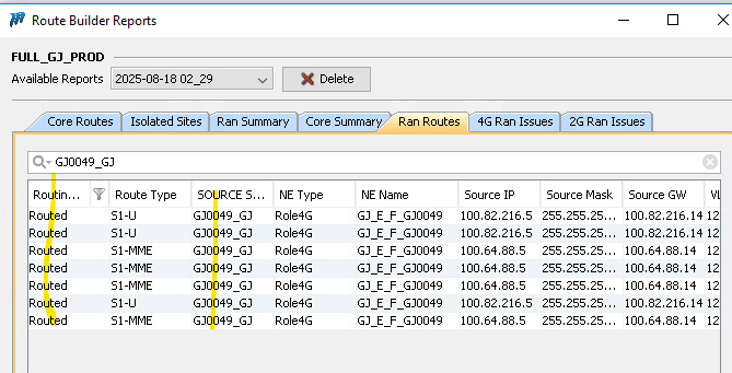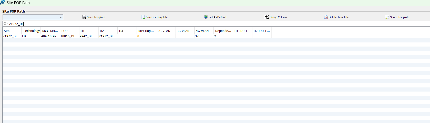 • As shown in the snapshot below, Site 21972_DL appears as routed in the Route Builder report but is missing from the Site Pop Path report.