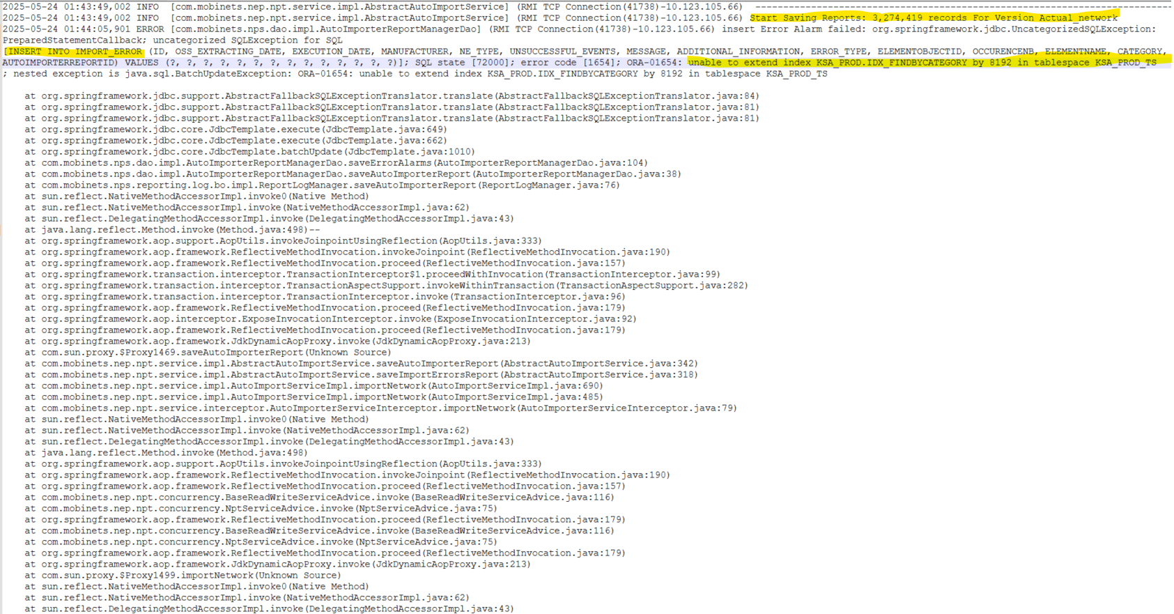 Error Report is not Appearing after 21st of May 2025 in ZAIN KSA Production 3.x
