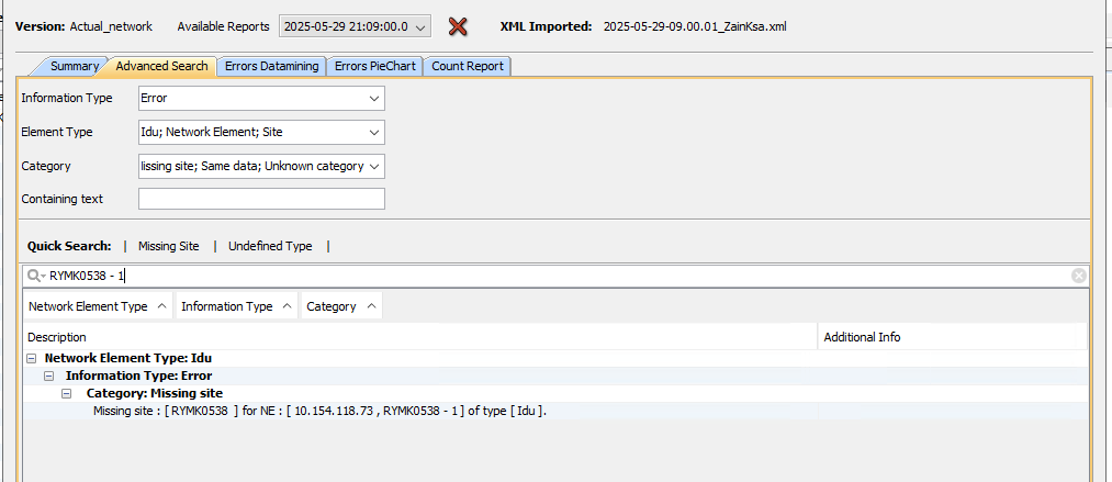 | Description | Some of the nodes are coming default sites, while their site is available in XML & NEP Site Report in ZAIN KSA. |