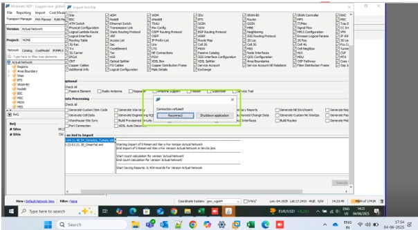 I initiated a sample XML (2025-06-04-11.48.54_Ooredoo_Tunisia) import on server .102 on dated 04-06-2025, but the connection was unexpectedly refused before the import could complete.