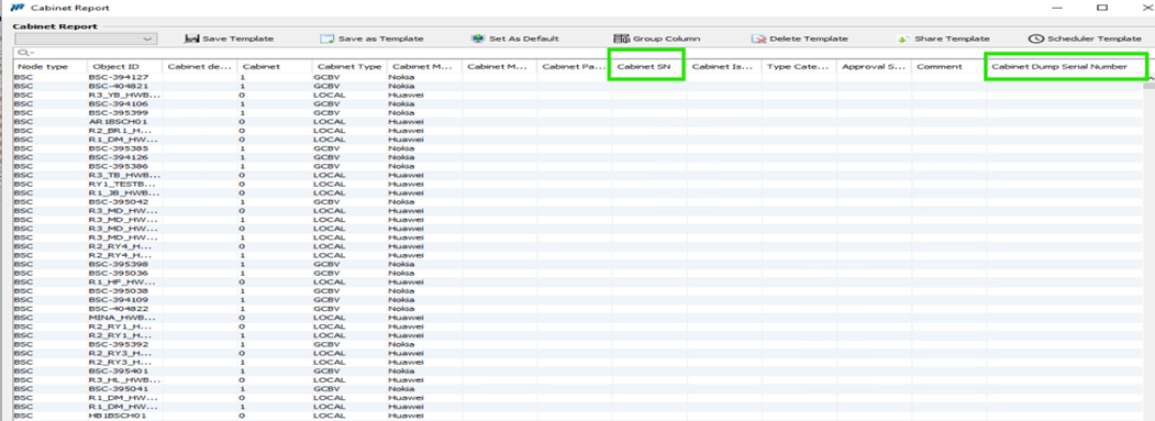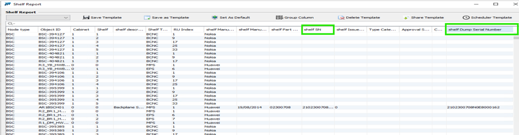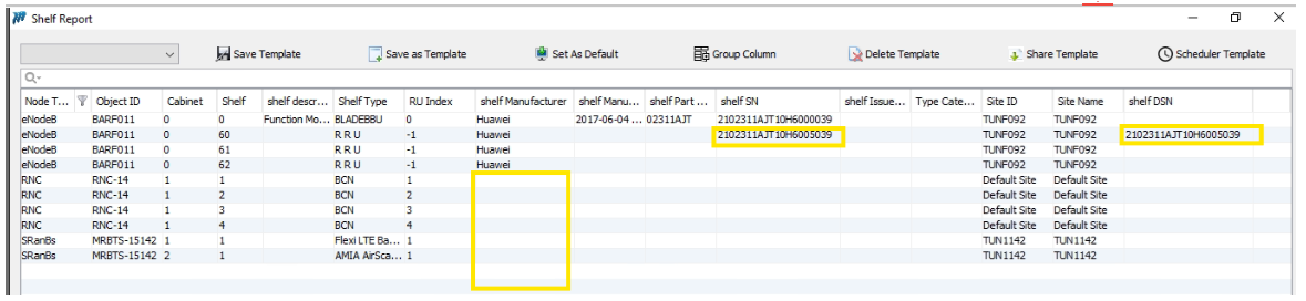 We need to add a header in cabinet/shelf/board report on platform .102 for “Ooredoo Tunisia” like it was available in ZAIN-KSA for duplicate serial numbers in dump, below is ZAIN KSA snippet for reference: