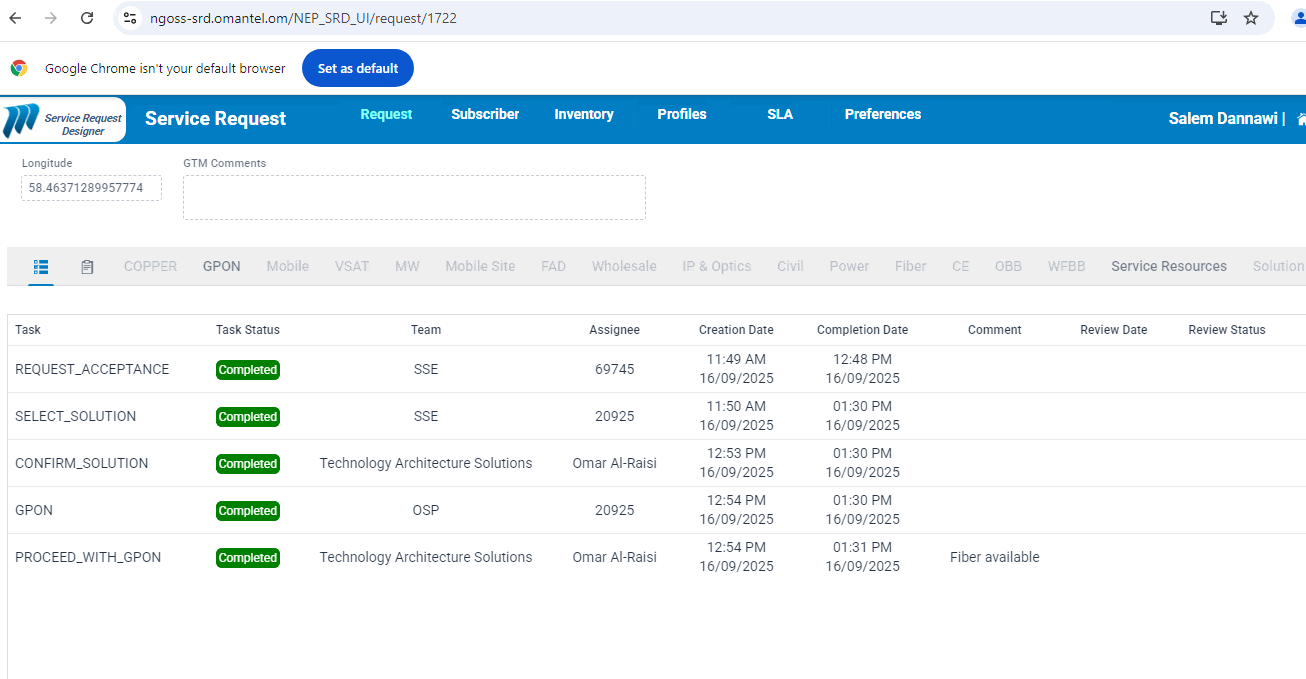the request hang on design in progress and the solution acceptance task is not created,