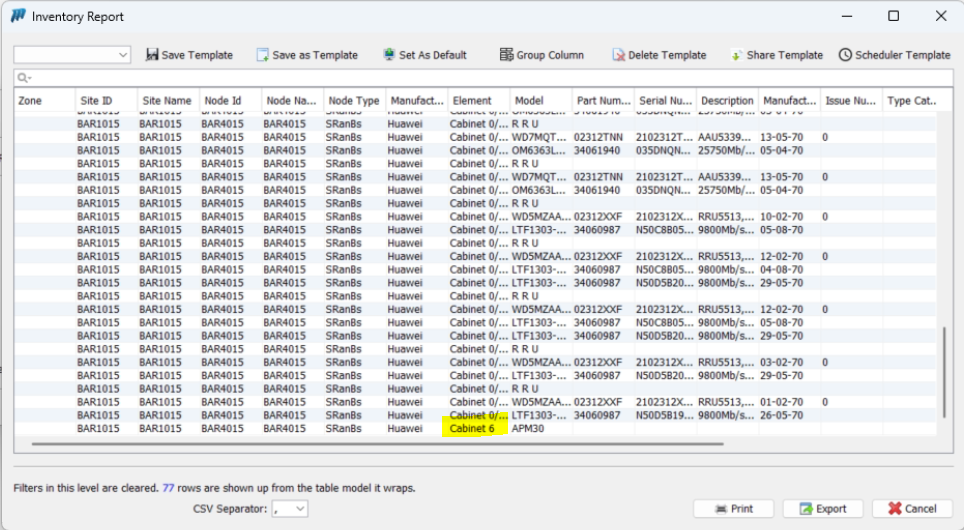 o In the Inventory Report, some cabinets, shelves, or boards are missing, although they are clearly listed in the Individual Cabinet/Shelf/Board Report.