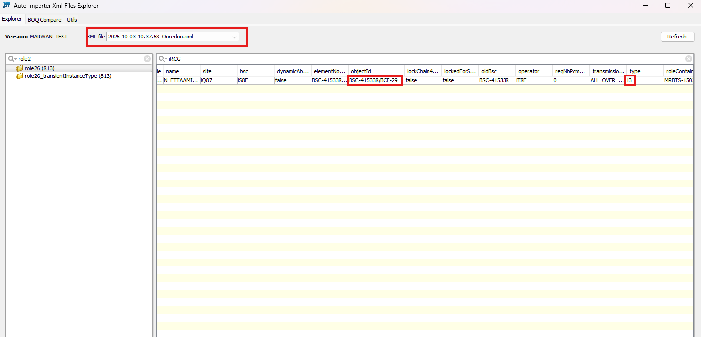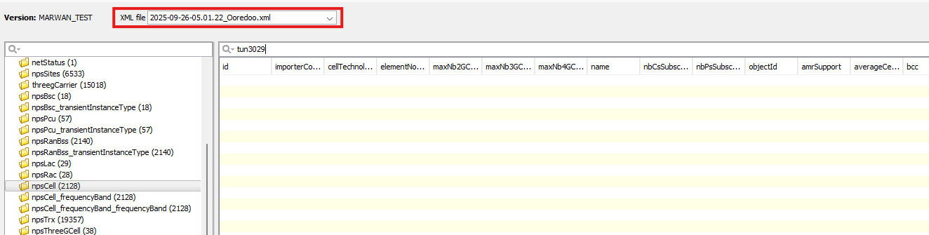 Marwan Kanaan added a comment - Dear @Indrasan Yadav, Kindly note that the issue is not reproducible on my local environment, as the data is being inserted correctly, as shown below. I recommend importing the XML file 2025-10-03-10.37.53_Ooredoo.xml, since the one you mentioned earlier does not contain any of the referenced 2G cells. Additionally, during debugging, I noticed a difference in the BTS model type. In the actual version, the BTS type is BTS3900_GSM (Huawei), while in my local is setup to SRAN NSN_GSM. SS SS SS Please find the relevant snapshots from the XML you provided below. SS Best Regards, Marwan Kanaan I Software Developer