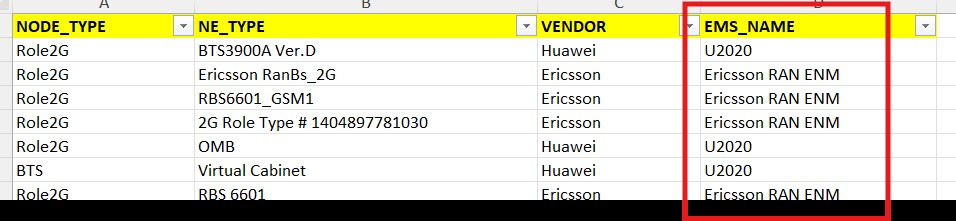 I have attached a sheet where the NODE_TYPE, NE_TYPE, VENDOR details along with the EMS_NAME.