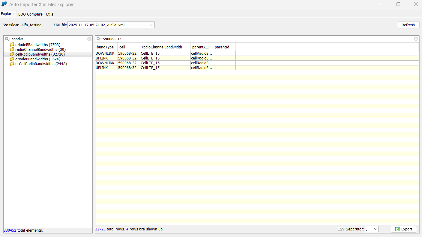 Found the issue caused by validation checking all the cell bandwidth not even present in xml of those also discuss with bessem told to check omanworkspace for probable fixes and changes