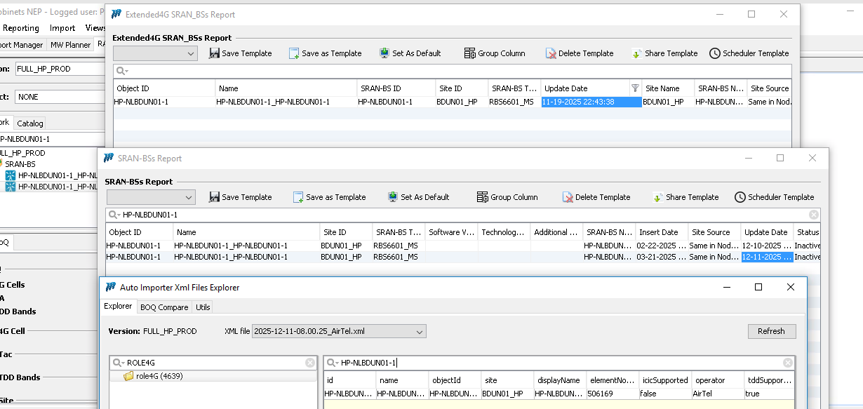 4G Sran node update date is not getting updated, the data is available in the XML, the same node is getting updated in SRANbs node report LLAGG20 SAMPLE NODE FROM HP CIRCLE