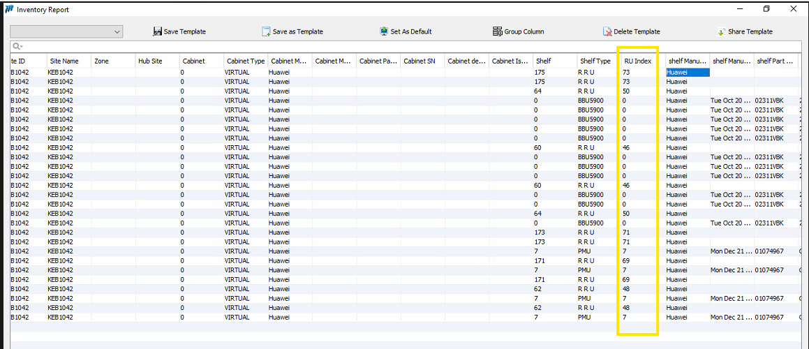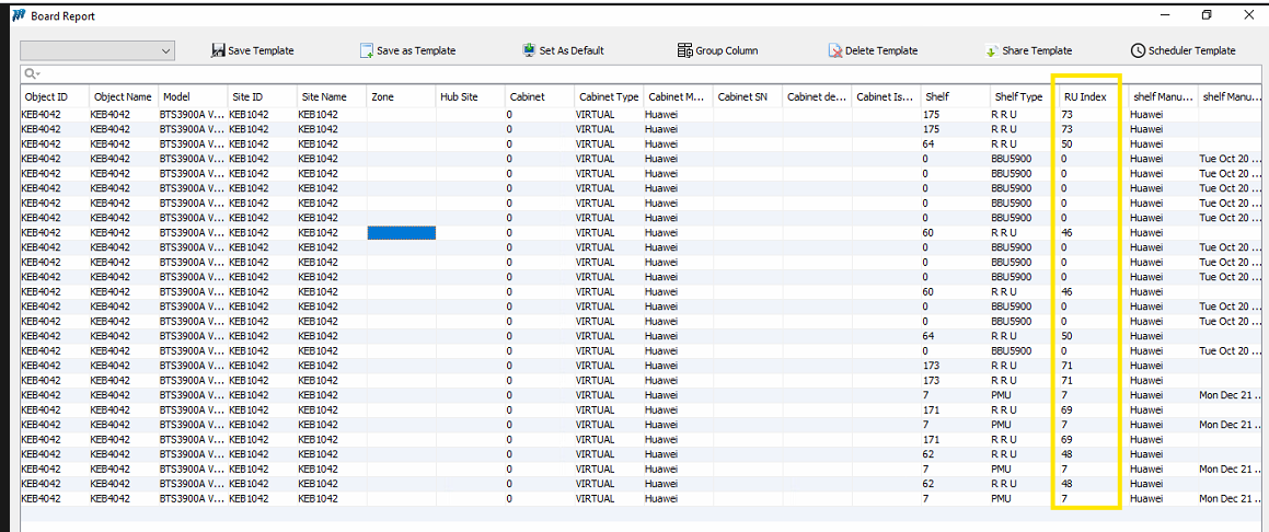 RU Index Is Correct In Board & Inventory Report But Incorrect In Shelf Report (Huawei RAN)