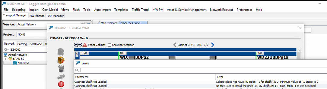 Could you please assign a NEP DEV resource to investigate and resolve the following issue? • XML: 2025-12-02-10.22.48_Ooredoo • Import Date: 03-12-2025 • Platform: .102 • Server Logs: Attached on JIRA The RU Index value is being imported correctly from the XML and is displayed properly in both the Board and Inventory reports for the same node (e.g., KEB4042-SRAN Node). However, in the Shelf report, the RU Index value appears as “-1”. Please refer to the snippets below for reference: Board Report Inventory Report Shelf Report Due to the RU Index issue showing as “-1,” the following pop-up error appears when I attempt to correct the catalogue layout issue. Additionally, there is no “-1” value for the Start RU field under the cabinet in the catalogue. Physical Configuration Error Snippet Thank you Indrasan |