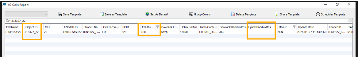 Uplink bandwidth is not importing for TDD cases under the 4G Cell report, even though the required data is available in the XML.