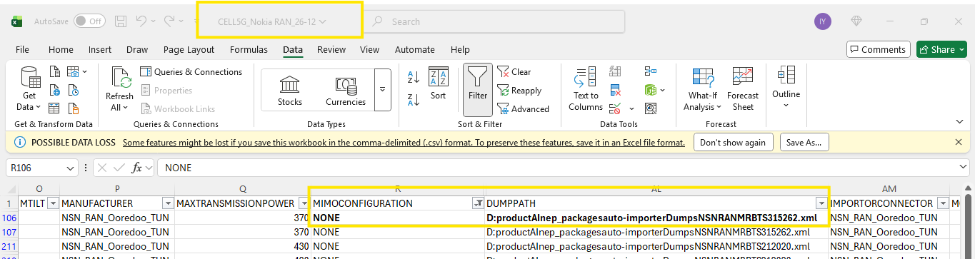 Could you please confirm the following points that I observed during data validation in the staging-DB for Nokia RAN: