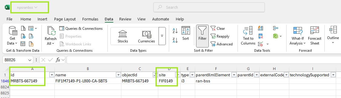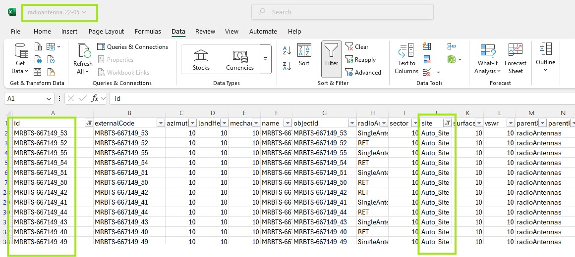 In XML, under csv "radioantenna" site id are coming "auto site" which should be come the same site id which are parsing against parent node.