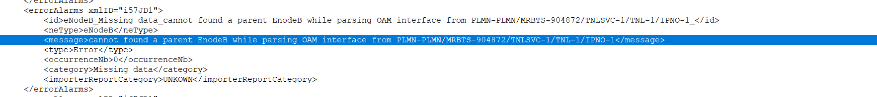 Parent EnodeB mapping issue causing XML data to not parse in NEP