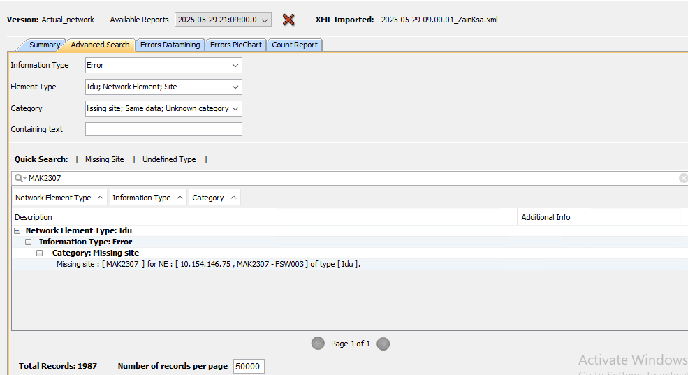 Some of the nodes are coming default sites, while their site is available in XML & NEP Site Report in ZAIN KSA