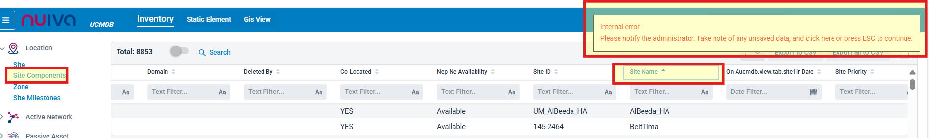 Exception Thrown When Sorting Site Components by Site Name