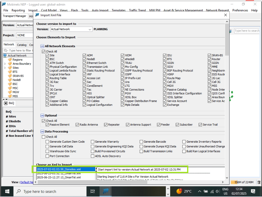 Error While Saving The Importer Report For The Version Actual Network During Nokia_RAN XML Import On .102