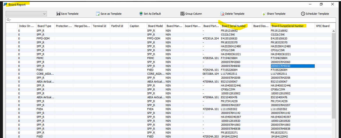 Header "Dump Serial Number" Is Missing In Cabinet/Shelf/Board