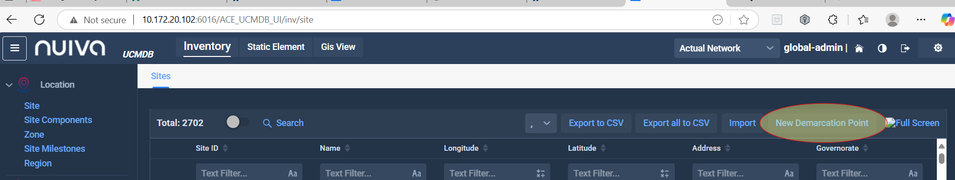 Add new site: Change the label of "New Demarcation Point" to "New Site""