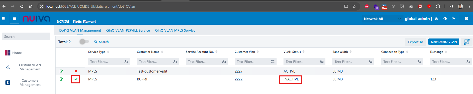 Delete button not responsive, static element Dot1Q